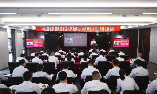 2025年7月1日上午,中航建设集团有限公司在副中心办公区组织开展“庆祝中国共产党成立104周年暨书记上党课主题活动”。集团党委班子成员,京内各单位全体党员、入党积极分子、副部长级以上领导,分(子)公司负责人现场参会,各二级单位、项目部及京外单位通过视频会议系统同步收看,共计千余人参加活动。