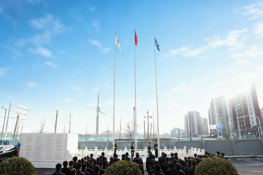 清晨的北京,暖阳初升,春风待起。上午8时18分,升旗仪式正式开始。伴随着雄壮激昂的《义勇军进行曲》和激昂奋进的司歌,国旗与司旗先后冉冉升起、迎风飘扬。现场人员精神抖擞,向国旗和司旗行注目礼,深切表达对祖国的崇高敬意和对集团公司新一年发展的坚定信心。
