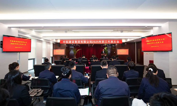 为凝聚职工群体智慧,擘画企业高质量发展蓝图,2025年10月17日,中航建设集团有限公司2025年职工代表大会在通州副中心办公区二层报告厅成功召开。会议采取现场和视频相结合形式,集团公司领导,机关各部门、京内各分(子)公司及项目部职工代表现场参加活动,京外代表通过线上参会,共同参与企业民主管理,共谋发展大计。人力总监苗兴刚主持会议。